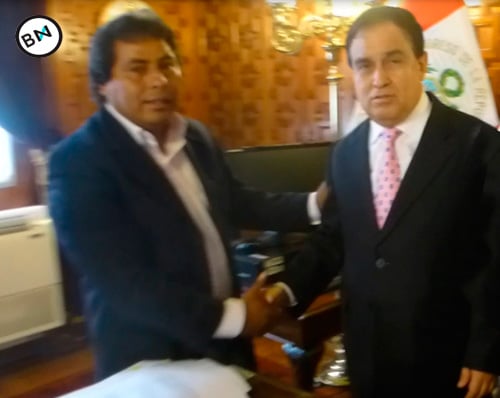 ARCHIVO: Presidente del congreso Fredy Otárola y el periodista chimbotano Santos Paredes unos de los defensores de la libertad de expresión en la regiòn Ancash.