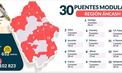 En Pallasca se instalaron 2 puentes. El Ministerio de Transportes y Comunicaciones (MTC) culminó la instalación de 30 puentes modulares en la región Áncash ubicados en...