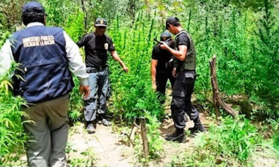 Personal policial de la Comisaría de la provincia de Bolognesi, Chiquián, Áncash, descubrió 2,323 plantones de marihuana que habían sido sembrados en un terreno agrícola del...