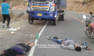 El chofer Richard Alejos, hermano del alcalde de Tauca, se dió a la fuga. Un camión atropelló a una motocicleta en el distrito de Tauca, Pallasca...