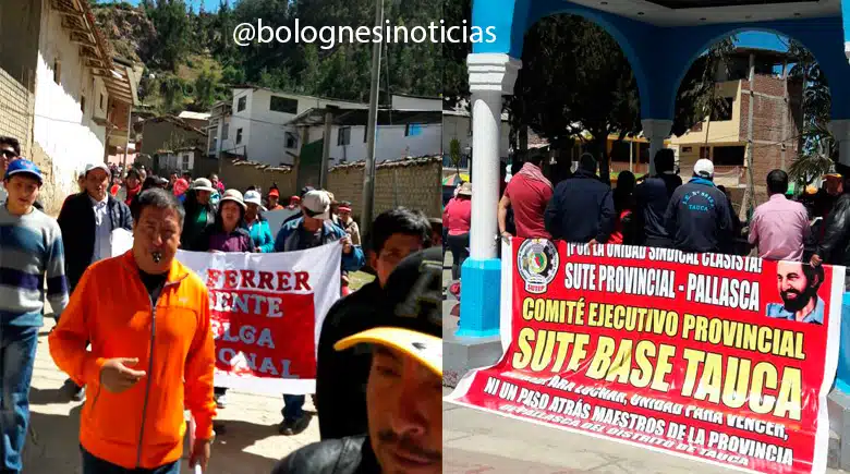 Profesores venidos de diversos distritos pallasquinos, como Bolognesi, Tauca, Pampas, Conchucos, Huandoval, entre otros, participaron en la marcha por las calles de Cabana. Lo más resaltante de esta protesta es que se pudo apreciar a docentes contratados de los caseríos, que llegaron desde las riberas del Marañón, el denominado “cinturón de pobreza” de Pallasca.