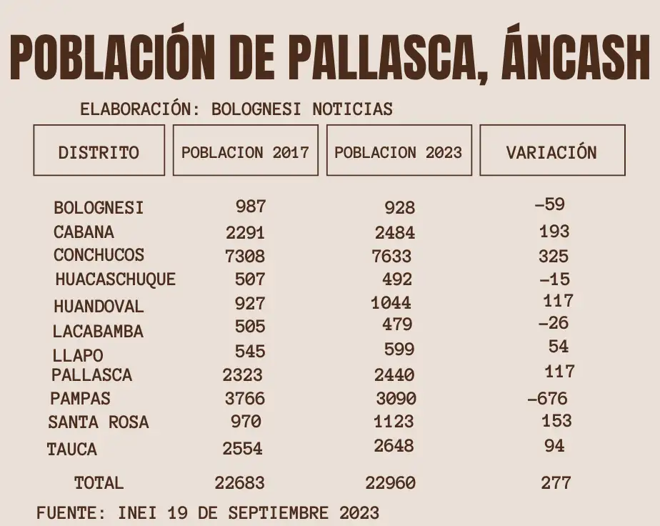 Leve repoblamiento en Pallasca: INEI proyecta crecimiento poblacional para 2023