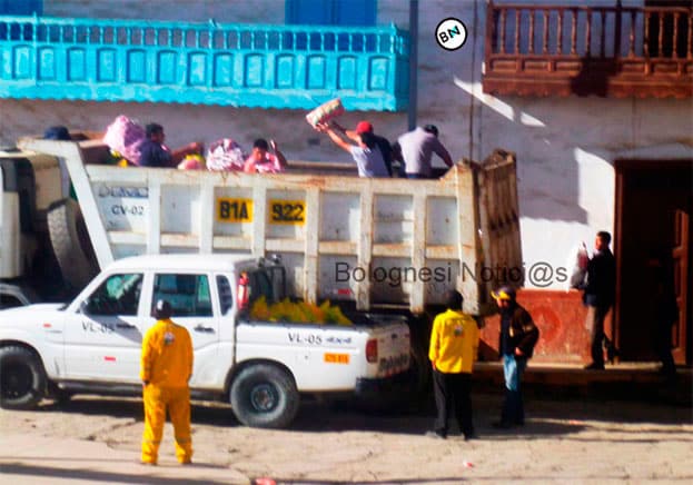 Sin importarle que los trabajadores de Consorcio Pallasca estuvieran en pleno horario de trabajo los hizo llamar, para que cargaran los productos y ayudaran a repartir, mientras que el mantenimiento de la carretera Quiroz – Pallasca quedò abandonado,  pese de la inversión millonaria que se viene realizando.